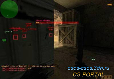 Cd Hack - это что-то похожее на волхак, только вместо того, чтобы видеть сквозь стены, от вас к противнику направлены лучи света, а также, белым цветом, вы видите, куда целится противник. Над его ником, который вы видите сквозь стены, видно какое оружие у игрока в руках.