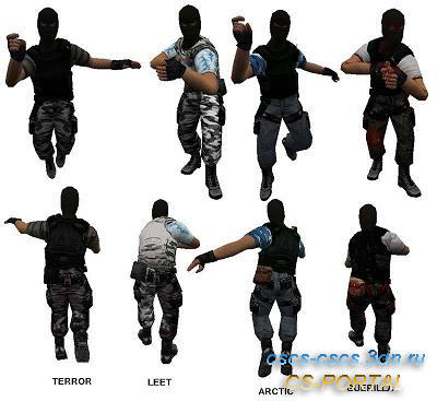 Красивые модели террористов.На этот раз terrorist выглядят устрошающе. Кто-то в хоккейной маске, а кто-то с изрисованным лицом. Эти модели как некак подходят для убийств в игре cs 1.6