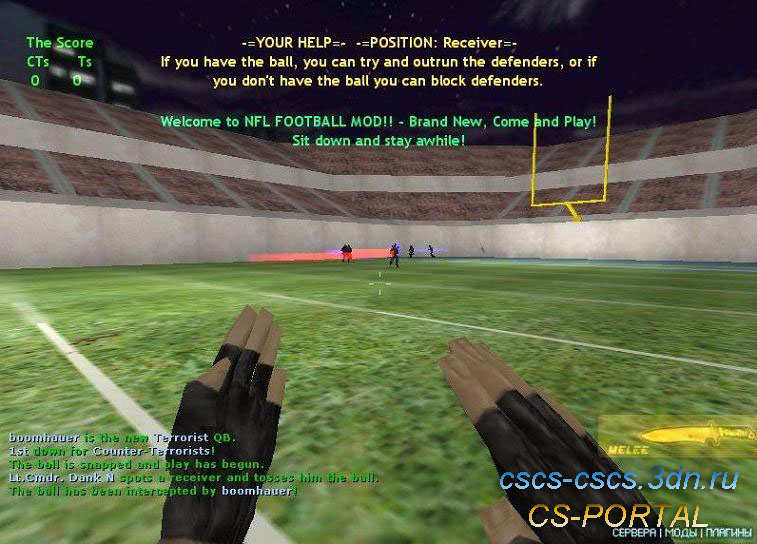 Описание: Это мод Американского футбола. Игра происходит на стадионе, играют две команды. Цель игры, закинуть мяч за линию.